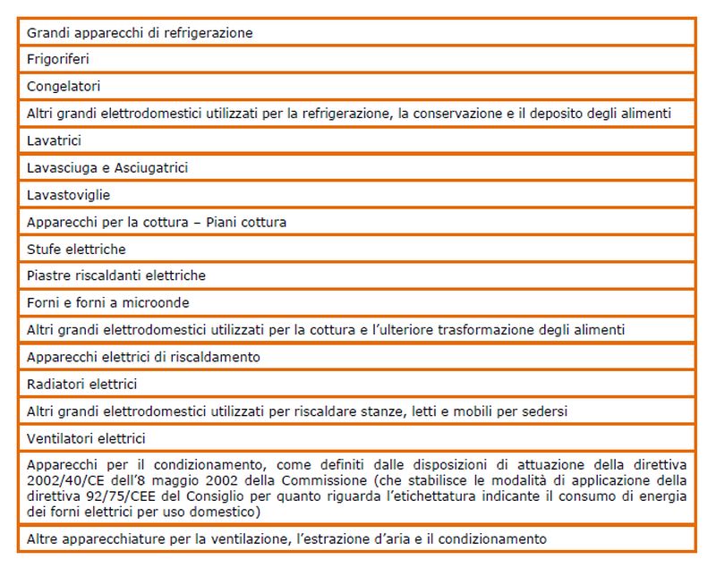 Per individuare i grandi elettrodomestici ammessi alla detrazione occorre fare riferimento all’Allegato II del decreto legislativo n. 49/2014, nel quale rientrano: