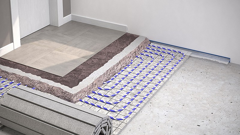 Tra le numerose opzioni disponibili sul mercato, il progettista ha scelto la linea di sistemi radianti a pavimento ad aggancio rapido Comfia RUN di Wavin Italia, pensata per assicurare la massima precisione e una velocità di posa senza precedenti, grazie alla possibilità di fissare il tubo direttamente sul pannello con una semplice pressione e senza dover utilizzare attrezzature specifiche. Dopo un confronto con l’ufficio tecnico di Wavin Italia, che ha fornito schemi e computi metrici chiari e dettagliati, l’installatore ha installato all’interno dei nuovi appartamenti circa 560 metri quadrati di pannello ROLLER RUN ULTRA, realizzato in EPS additivato con grafite e caratterizzato da uno spessore di soli 25 millimetri che assicura un valore di resistenza termica di 0,80 m2/kW. Sui vari pannelli, che presentano sulla superficie apposite guide di riferimento, è stato posato il tubo POLYRUN in PE-Xa a 5 strati, caratterizzato da strisce ad aggancio rapido in velcro avvolte a spirale, che garantiscono un fissaggio rapido e stabile.